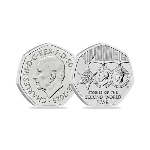 • Features an official UK 2025 “Stories of the Second World War” 50p coin struck to brilliant uncirculated standard by the Royal Mint